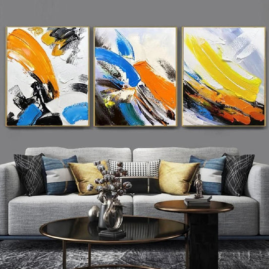 3D Colourful Brush Strokes Set of 3 Wall Painting