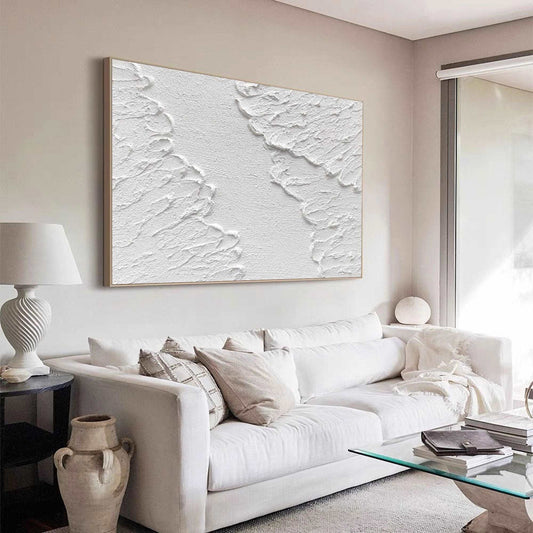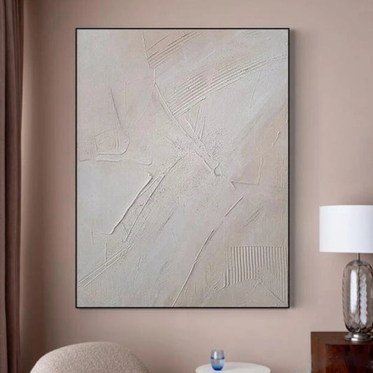 3D White & Beige Minimalist Handmade Abstract Living Room Oil Painting