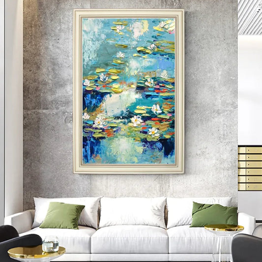 3D Textured White Lotus Palette Knife Wall Artwork