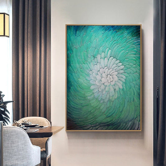 3D Textured Green Floral Petals Palette Knife Art