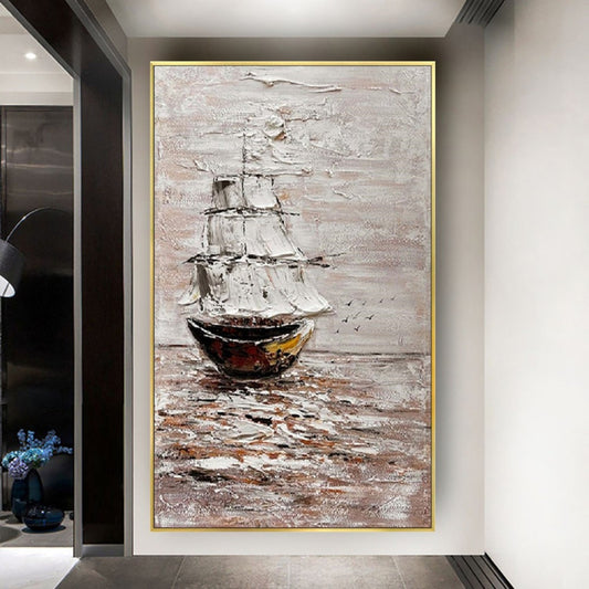 3D Textured Seascape Gold Sailing Boats Oil Painting