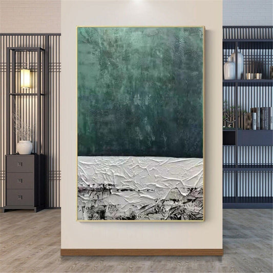 3D Textured Green 100% Hand Painted Minimalist Art