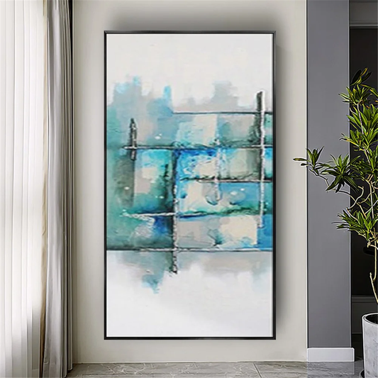 Abstract Aqua Blue Urban Cityscape Wall Art