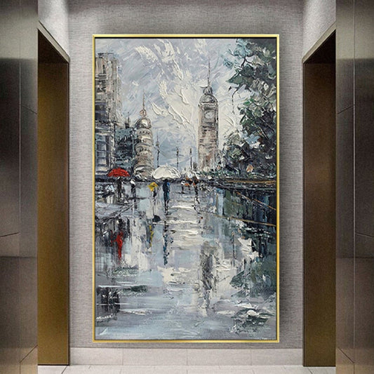 3D Heavy Textured Cityscape 100% Hand Painted Art