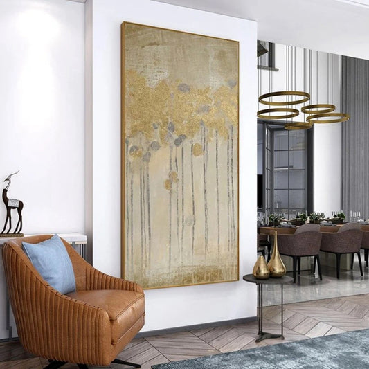 High Quality Gold Foil Trees Abstract Handmade Oil Painting