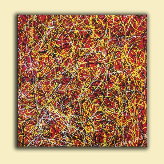 Modern Abstract Red Canvas Jackson Pollock Inspired Art