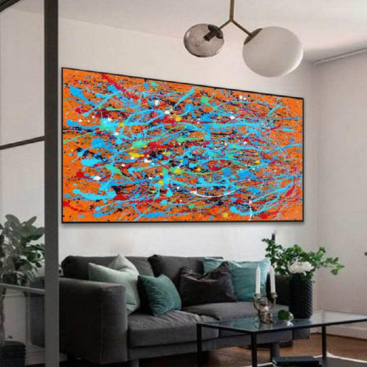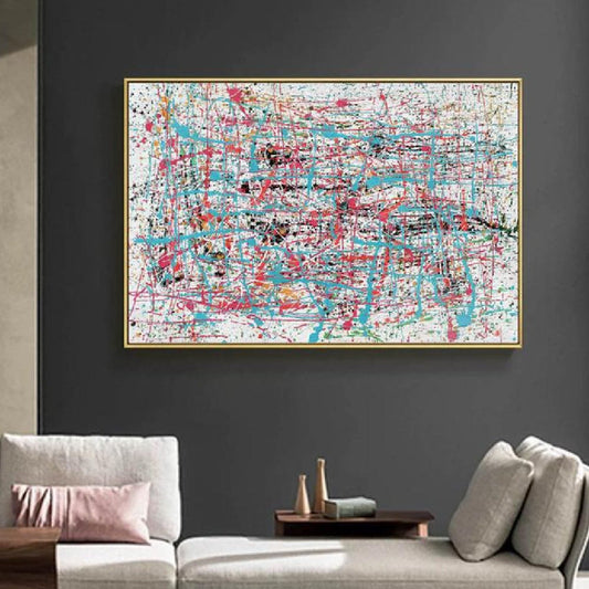 Large Colourful Abstract Pollock Style Replica Oil Painting