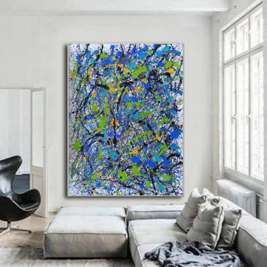 Jackson Pollock Inspired Blue Acrylic Modern Art