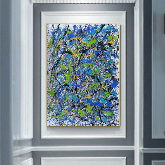 Pollock Influenced Composition of Blue Green Wall Art