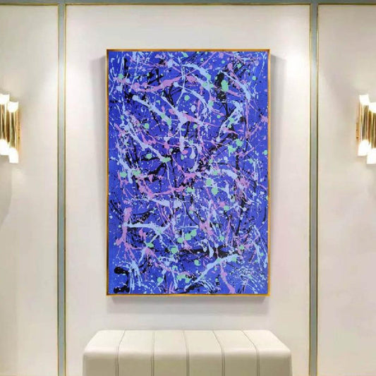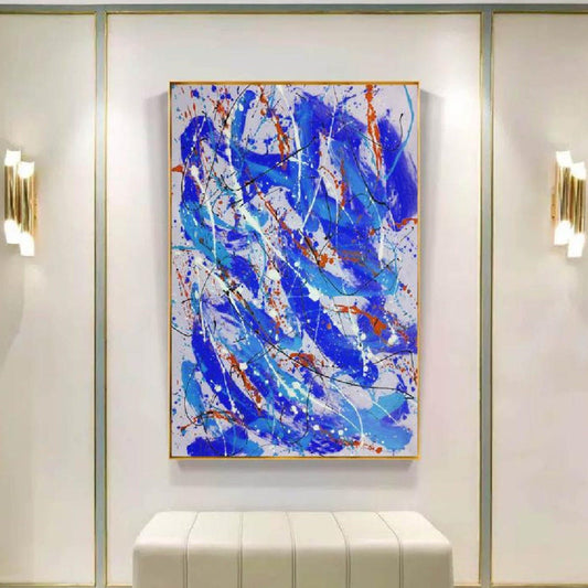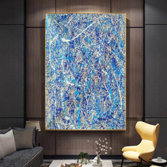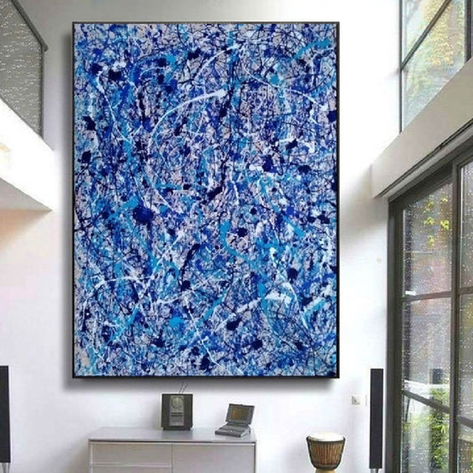 Abstract Blue 100% Hand Painted Pollock-influenced Art