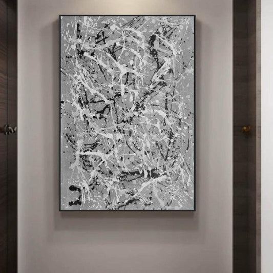 Grey 100% Hand Painted Jackson Pollock Style Inspired Artwork