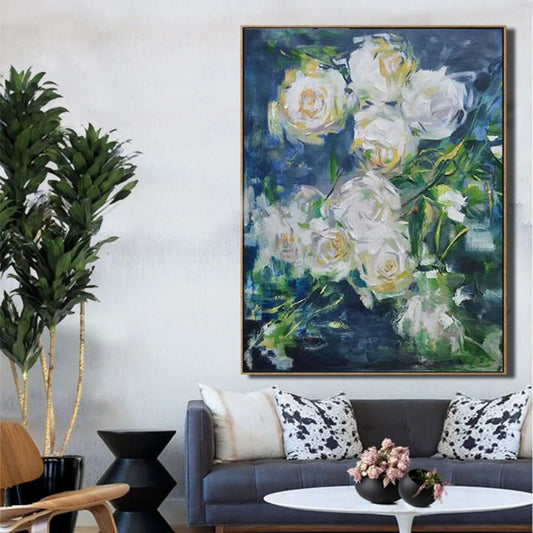 Blooming White Roses Textured Floral Painting