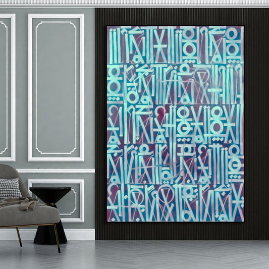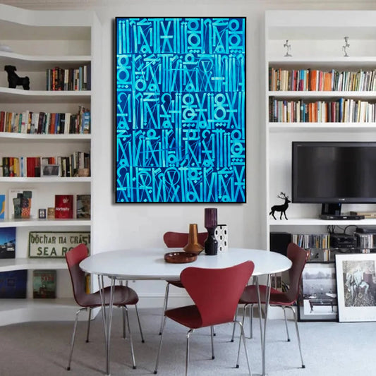 Retna-Inspired Two-Tone Blue Calligraffiti Modern Wall Art