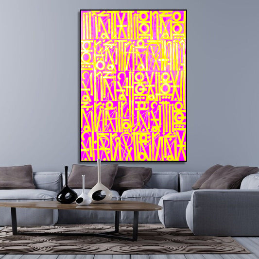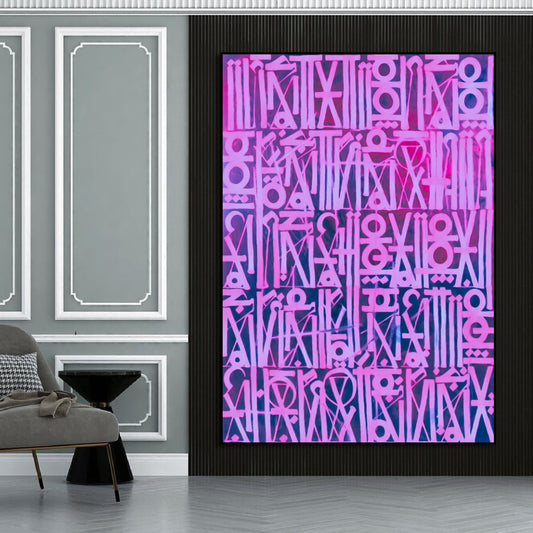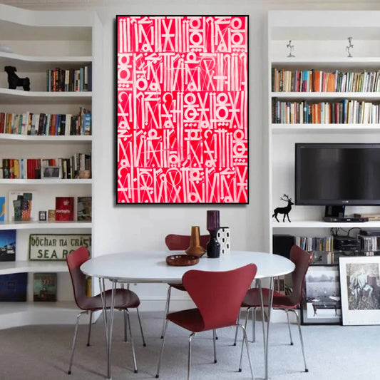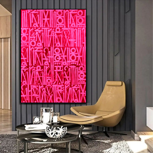 Retna-Inspired Pink Calligraphic Canvas Oil Painting