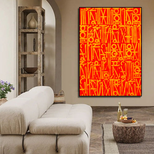 Vivid Red Calligraffiti Retna Style Canvas Painting