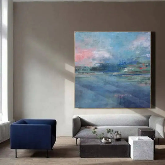 Large Abstract Blue Ocean Landscape Wall Art
