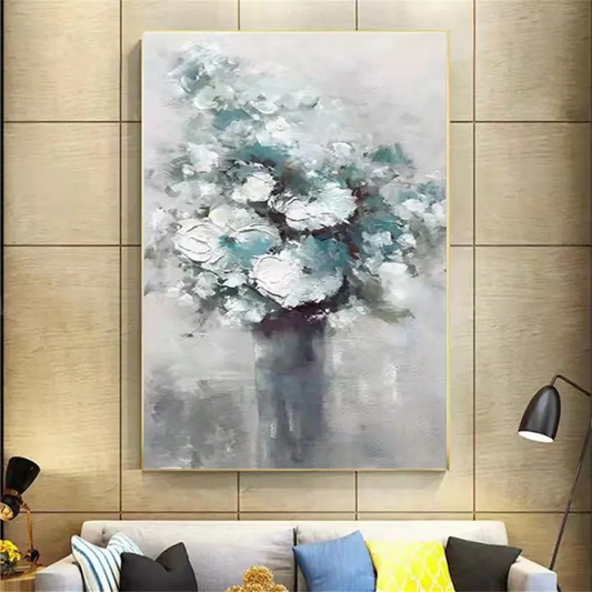 Abstract Grey Flower Vase Impasto Textured Oil Painting