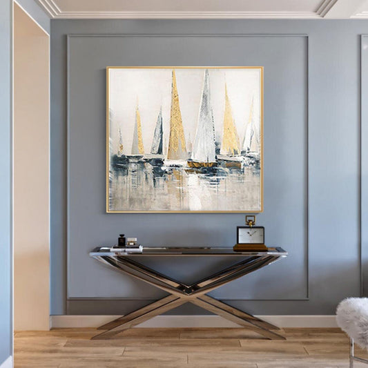 3D Gold Foil Textured Sea Sailboats Canvas Artwork