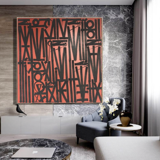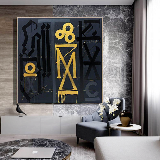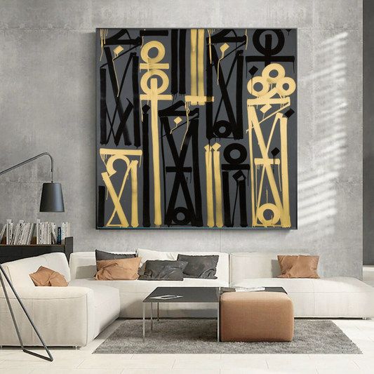 Square Black Yellow Retna Replica Hieroglyphic Art