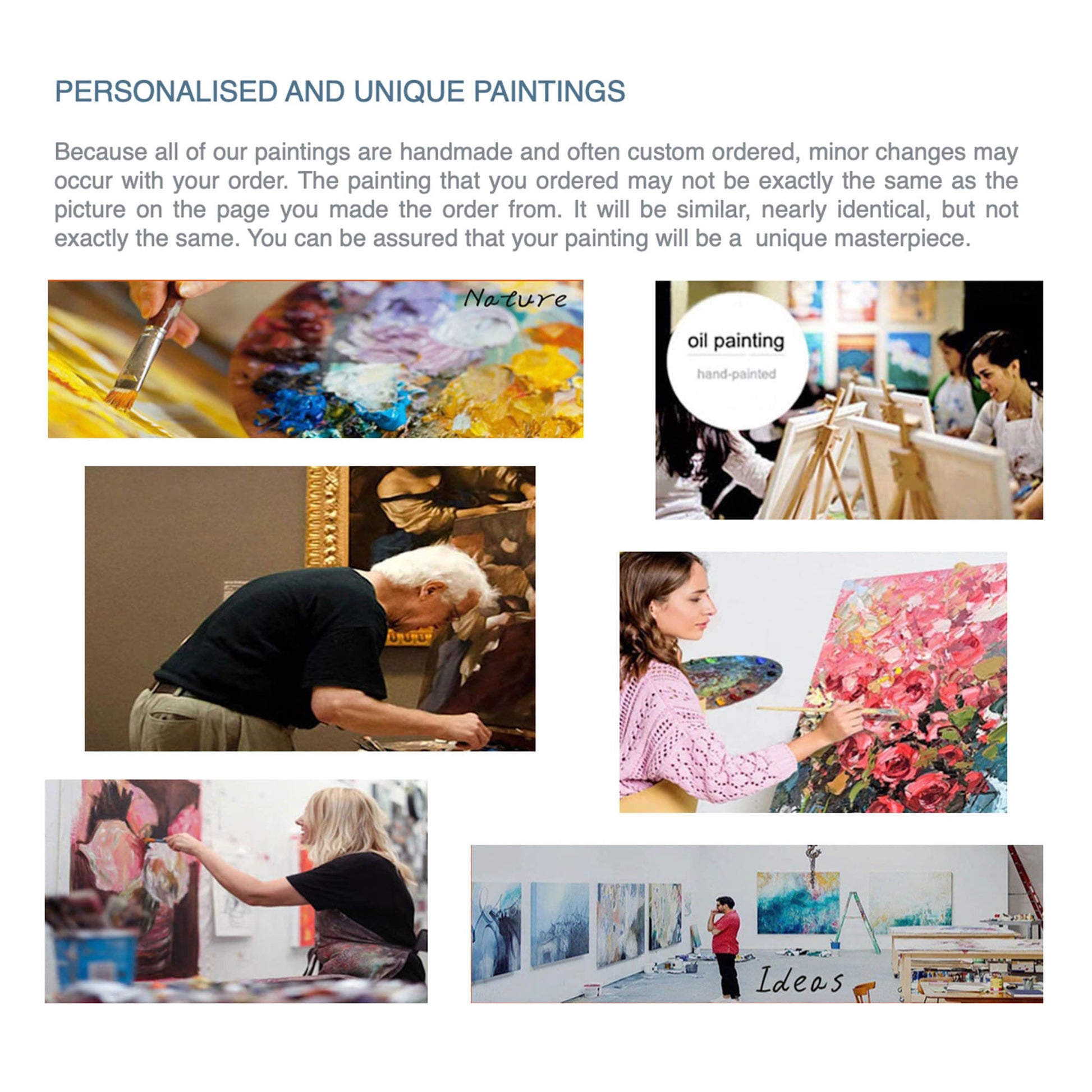 Not exactly. Because all our paintings are handmade by our international artists, there might be minor changes that will make your order unique. Your painting will be nearly identical, but not exactly the same.